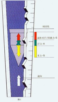 流量計(jì)測量原理 轉(zhuǎn)子流量計(jì)是一種變面積式流量計(jì),它通常具有一段直立的錐管和一只可以在其中自由的隨流量大小上下移動的浮子(如圖1)。當(dāng)流體自下而上流經(jīng)錐管時(shí),流體的動能在浮子上產(chǎn)生的推力S和流體的浮力A使浮子上升。隨著錐管內(nèi)壁與浮子之間的環(huán)形流通面積增大,流體動能在浮子上產(chǎn)生的推力S隨之下降。當(dāng)推力S與浮力之和等于浮子自身重力G時(shí),浮子處于平衡,并穩(wěn)定在某一高度上,該高度位置對應(yīng)的刻度指示流過流量計(jì)的流量。 |